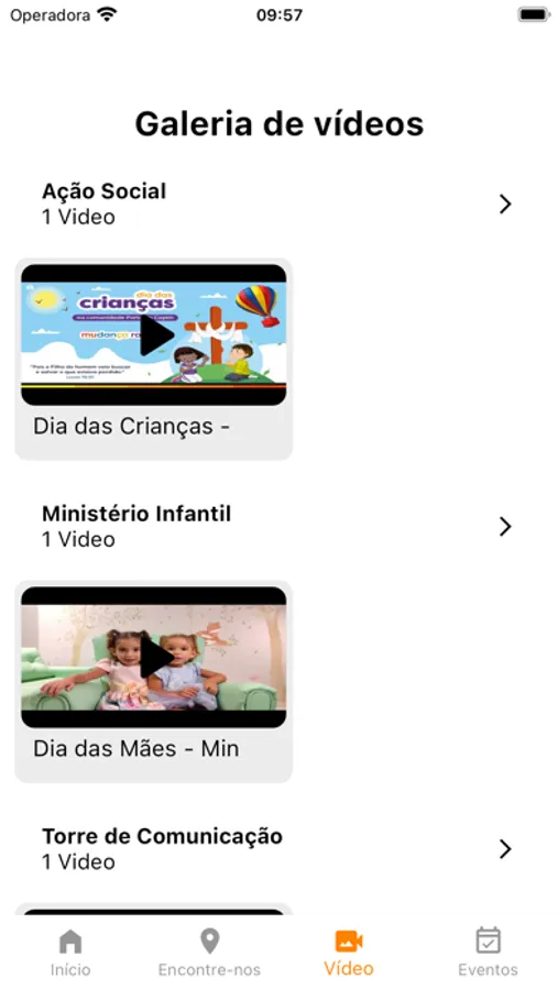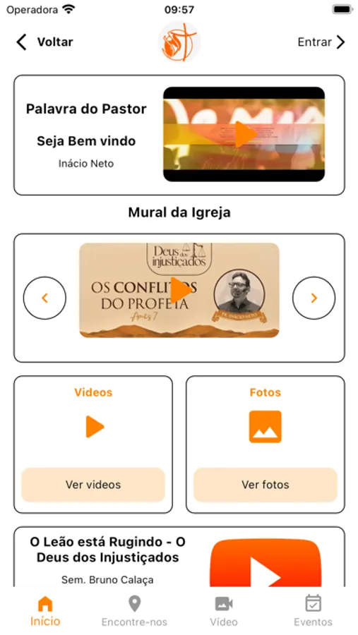 - Mural da igreja com as notícias e ações da igreja local com fotos e vídeos;