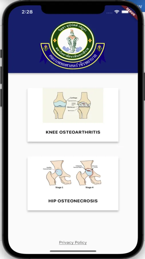 this app giving you information for KNEE OSTEOARTHRITIS and HIP OSTEONECROSIS
