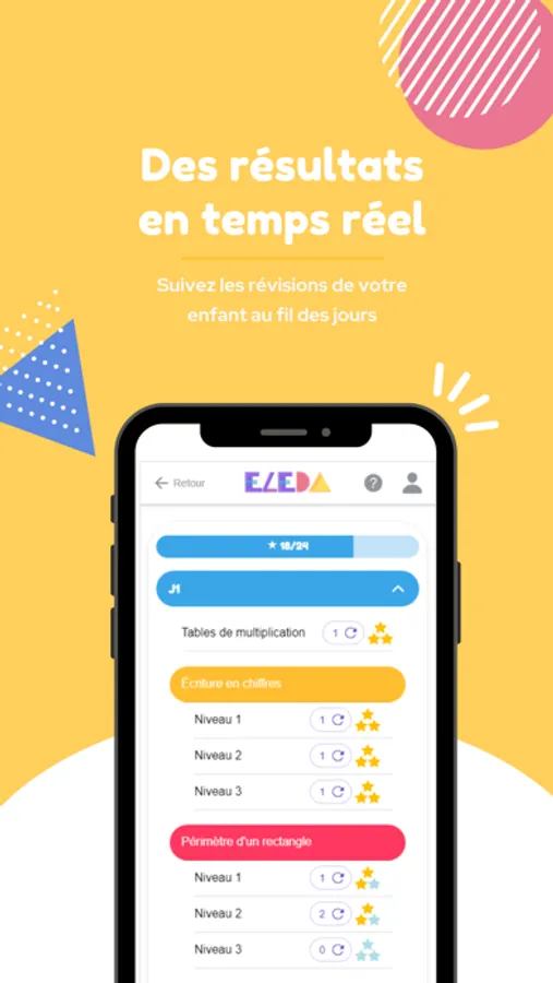 S'exercer avec le cahier de vacances Eleda, c'est avoir à sa portée une liste complète d'exercices auto-corrigés, permettant un entraînement efficace en famille. Le suivi de la progression de l'enfant est simple et offre la possibilité de contrôler les connaissances en quelques minutes.