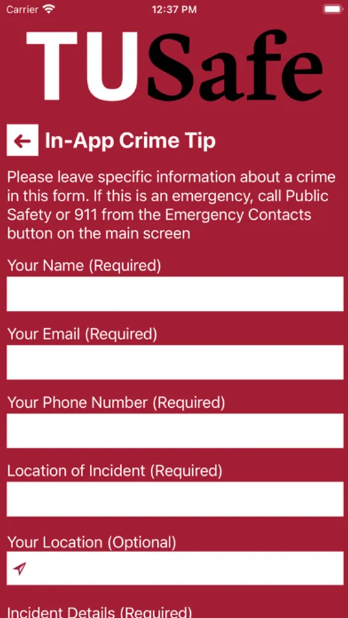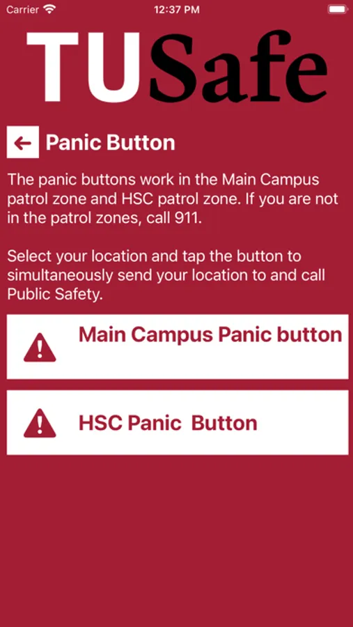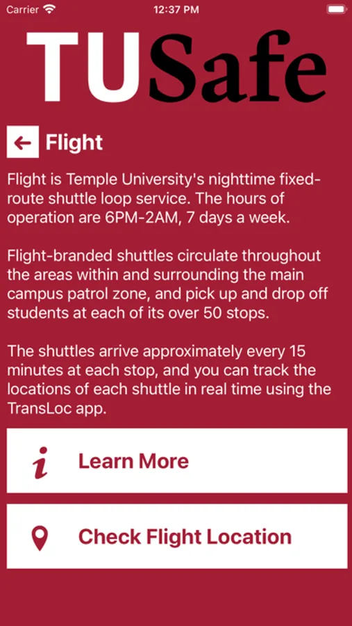 - Panic Button : Send your location to Temple University security in real-time in case of a crisis