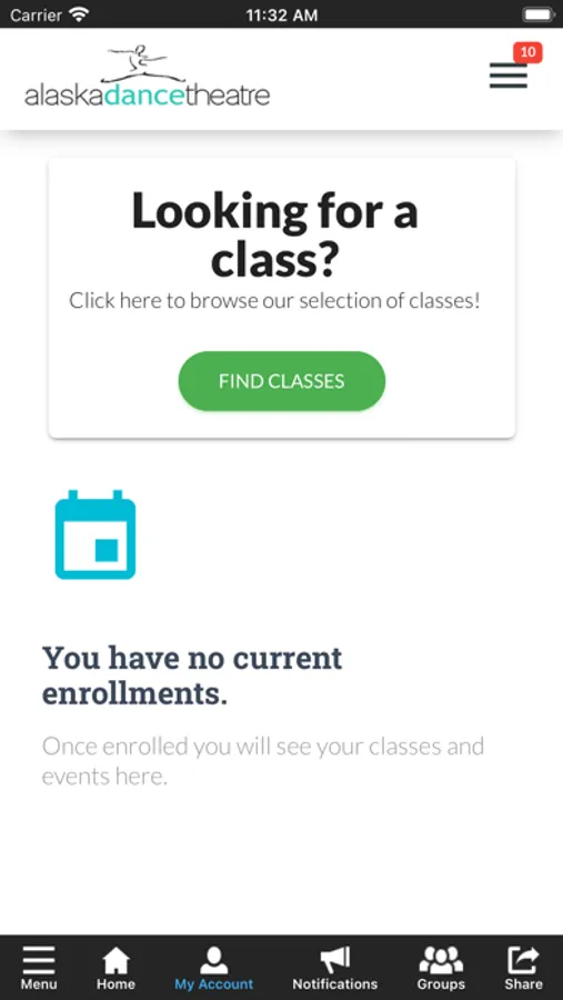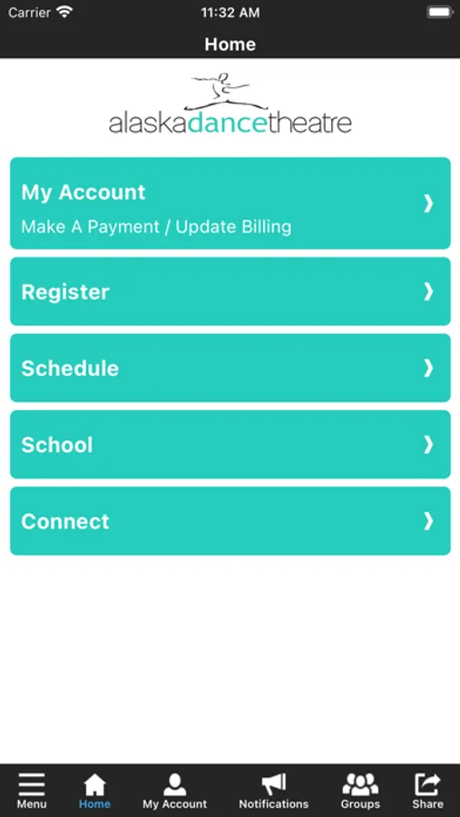 The Alaska Dance Theatre app allows you to manage your account with ease, register for classes, communicate with staff, and make payments. You'll also receive important notifications about class changes, closings, registration openings, special announcements, and upcoming events.