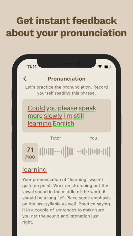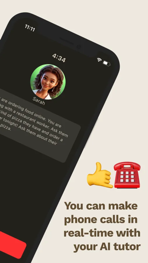 You have a language tutor that is available 24/7. Busy schedule? No problem. Whether it's early morning or late at night, our AI tutors are always here for you. This means you can practice speaking a new language at a time that’s most convenient for you. No need to schedule sessions or work around someone else's calendar. Simply open the app and start learning.