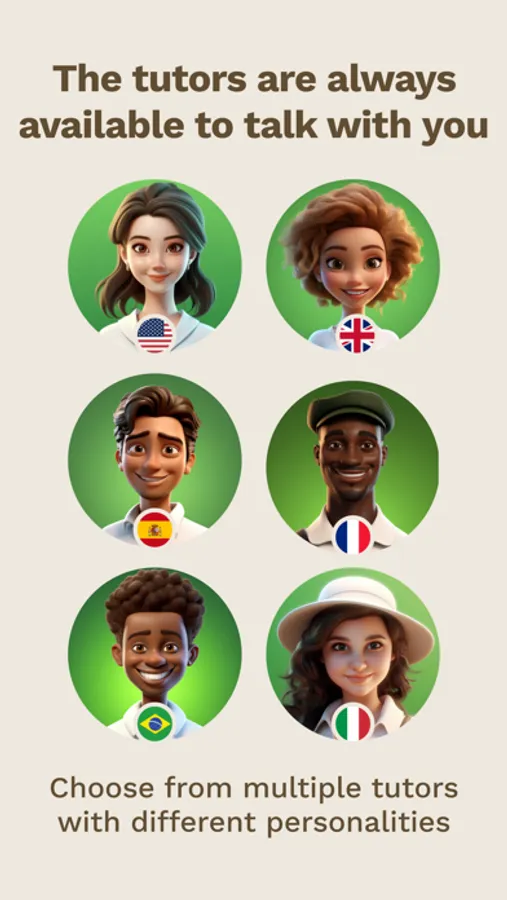 Experience diverse and engaging learning with a range of AI tutor personalities. Whether you prefer a friendly, casual conversation partner or a more formal, structured instructor, we’ve got you covered. Each tutor has its own unique style and approach, so you can choose the one that aligns best with your learning style. This feature not only makes your practice sessions more enjoyable but also helps you adapt to conversing with different types of speakers, just like in real-life interactions.