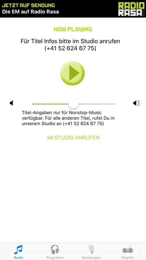 Eine Internet-Verbindung ist nötig, um die aktuellen Daten zu sehen und Radio zu hören. Achtung: beim Streamen über's 3/4G-Netz können zusätzliche Kosten von Deiner Telefongesellschaft anfallen!