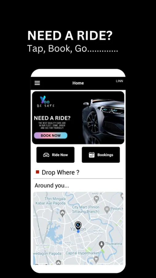 Open the App: Launch Yoo and enter your pickup location and destination.