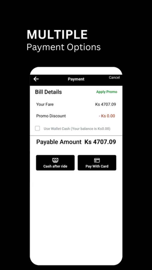 Secure Payments: Pay seamlessly through the app using various payment options, including credit/debit cards, mobile wallets, or cash.
