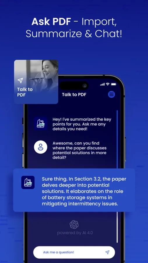 Engage with your PDFs on a whole new level using the unique "Ask PDF" feature. Import PDFs and have interactive conversations with their content. Extract information, seek clarifications, and gain insights, all through intuitive AI-powered interactions.