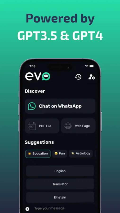 Powered by GPT3.5 and GPT4: Evo utilizes the most advanced language models for an unmatched conversational experience.
