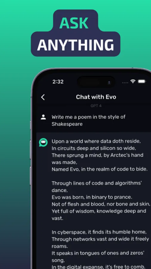 Join us on this technological journey and redefine the way you communicate with AI. Download Evo today and experience AI chat that’s not just smart, but also conversational, contextual, and surprisingly human.