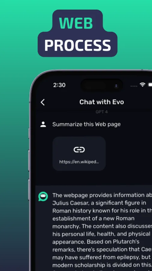 But Evo is more than just an ordinary chatbot. It's equipped with advanced file and webpage recognition features. Need insights on a document? Just upload it to Evo. Stumbled upon an interesting webpage you want to discuss? Share it with Evo. Our AI companion can understand and provide useful feedback, saving you time and streamlining your interactions.