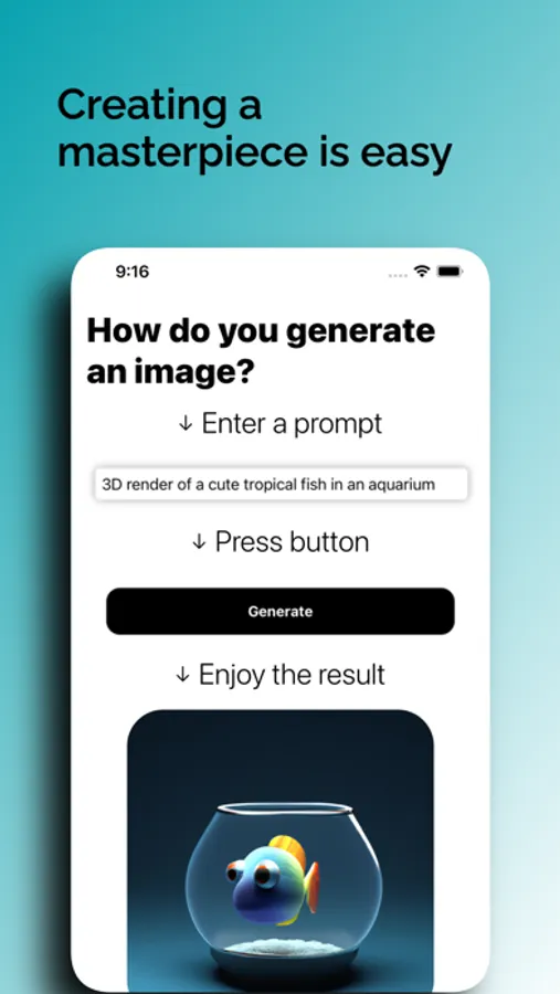 The AI Canvas app is easy to use and requires no drawing skills. Enter your text description or prompts, and click the Generate button. Your images will be generated in seconds with AI.