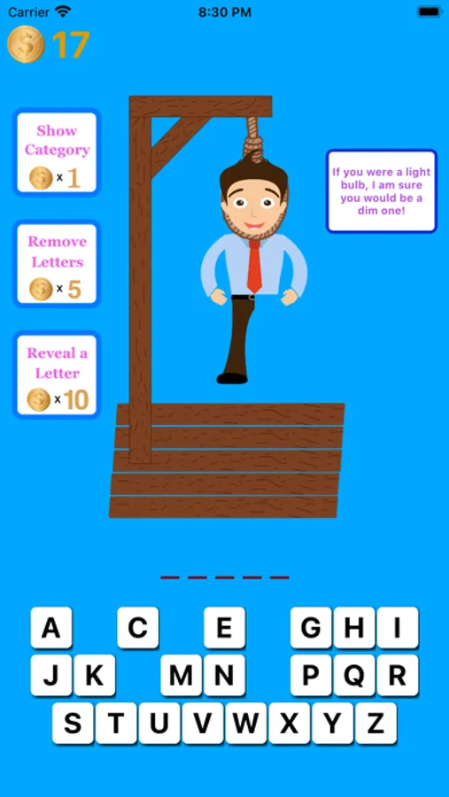 Boss got you in a bad mood? Husband or wife nagging too much? Who's got you bothered? Well now you can blow off steam in a fun, relaxing and playful way. Playing hangman. Pick the person stressing you out to be your hangee! Find any picture in your photo library to create your custom hangee. Then play like regular hangman. Well, to make it a little more interesting, your hangee will insult you as you play!