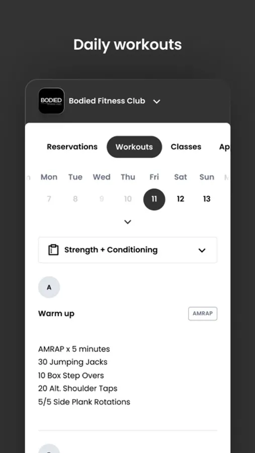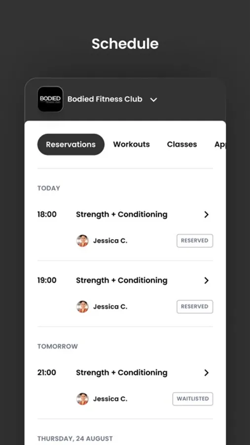 For members of Bodied Fitness Club to reserve their place in a class, sign up for gym events, and general account management like updating headshots and credit card on file.