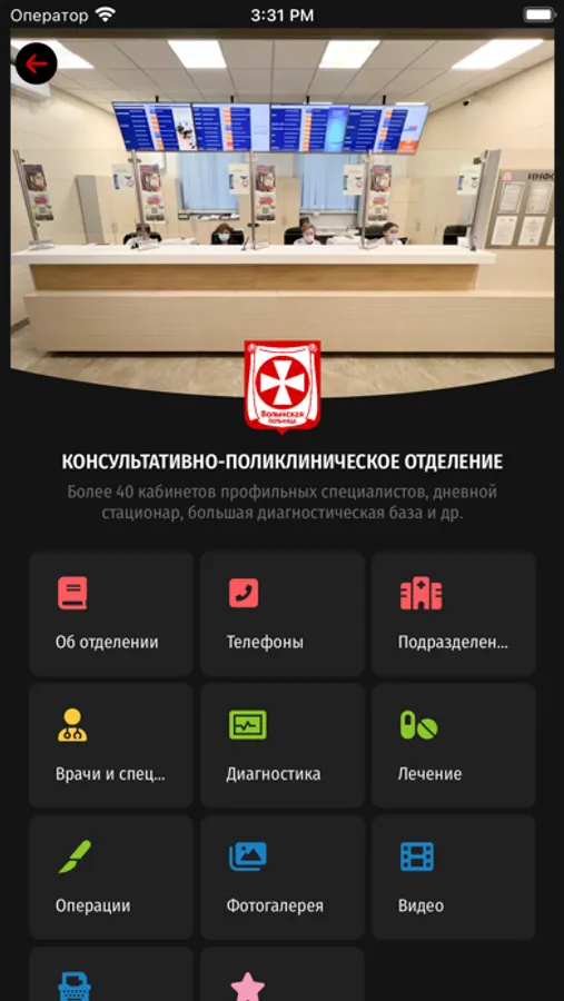 Виртуальный 3D тур по больнице и отделениям, онлайн трансляция собственного телеканала, подробная информация о Волынской больнице, описания отделений, биографии врачей и специалистов, описания заболеваний, методов лечения, диагностики и операций, статьи и видео от наших специалистов, прейскурант услуг и многое другое с мгновенным поиском интересующей информации.