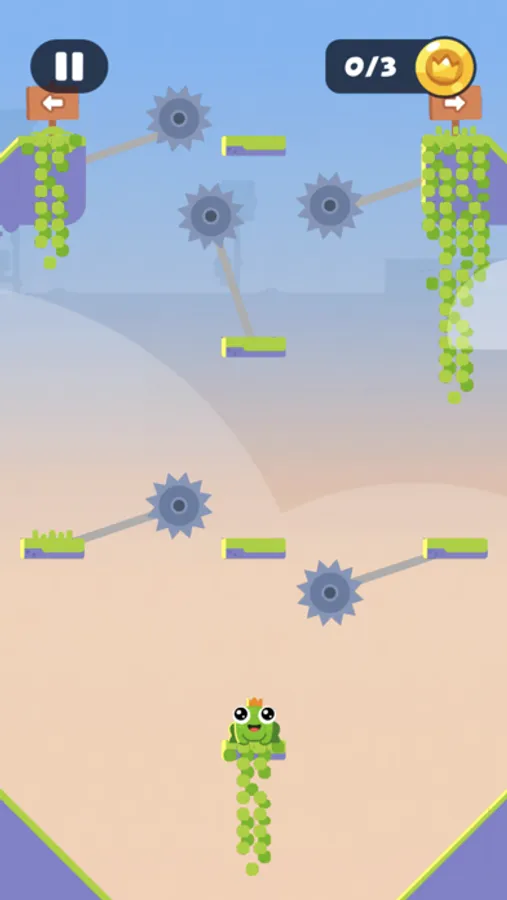 Avoid spinning saws, precisely land on platforms and slowly reach the top.
