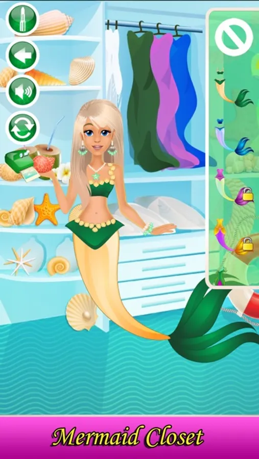 Then do Make Up for the beautiful princess mermaid. Help pick out the perfect outfit in the underwater walk-in closet room. Have fun as you complete all the stages!