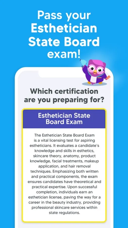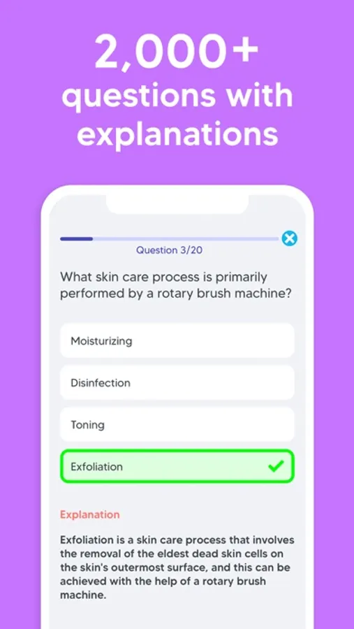 Pass your Esthetician State Board exam with ease! Take realistic practice exams and quizzes to boost your chances of passing the real exam on your first try. With 2,000+ questions written by experts, detailed explanations for each question, and hundreds of tests & quizzes at your fingertips, this is the only resource you need to prepare for the Esthetics State Board exam!