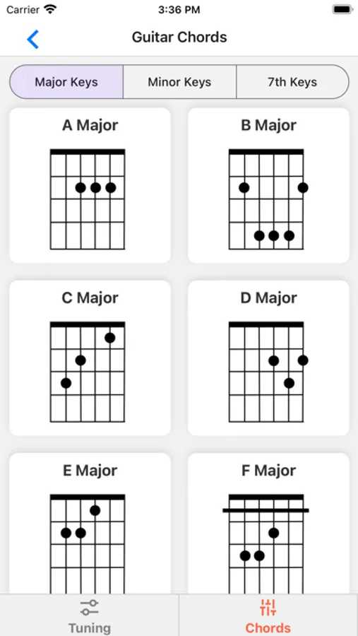 Customizable Settings: Tailor the app to your preferences with customizable settings. Adjust the tuning reference, select alternate tuning options, and modify the chord display to suit your playing style and personal needs.