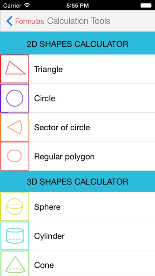 This app also has a number of tools to calculate the geometry shapes or find the roots of equations. Users can also share any formulas to friends by many ways: email, print, or Facebook.