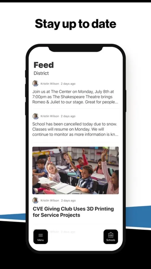 In the Live Feed is where you'll find updates from the administration about what's going on in the district right now. Whether that's celebrating a student's success, or reminding you about an upcoming deadline.