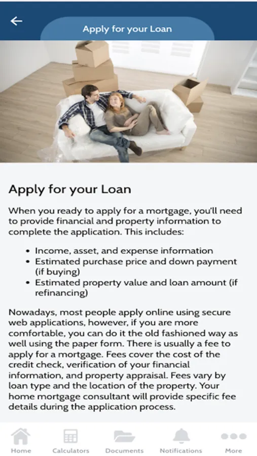 App Features: - Calculate payments to the penny with 13 precise calculators - Estimate home affordability - Decide whether or not to refinance - Chart your home buying journey with a step-by-step guide - Identify the right loan program - Track your progress with interactive checklist - Stay informed with mobile blogs - Scan and upload your loan documents securely - Connect instantly with your loan officer via messaging and push notifications calculations: