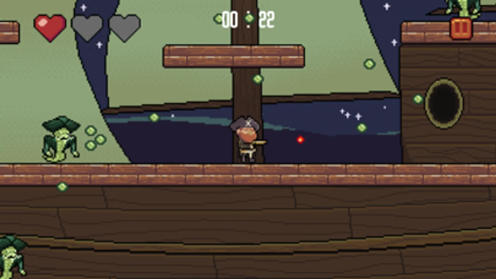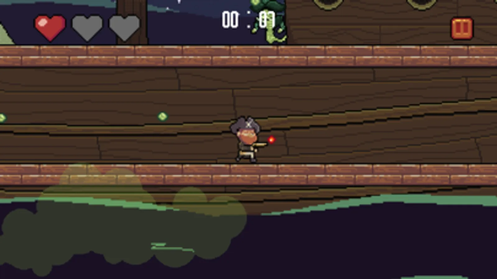 On Forbidden Waters you control a pirate seeking for a lost treasure, in an abandoned ship on high seas. There you discover that this is a trap prepared by the old crew which have long met Davy Jones' Locker! Your only alternative is to survive the longest you can.