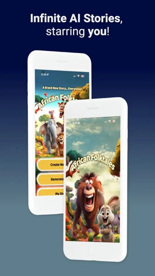Unlock the world of African Folk Tales like never before with our exclusive subscription! Immerse your family in a realm of limitless imagination with our app, which weaves captivating and personalized stories where you and your kids become the protagonists. Elevate your kids' creativity using our cutting-edge AI Image Generation feature, designed to create one-of-a-kind, kid-friendly illustrations.