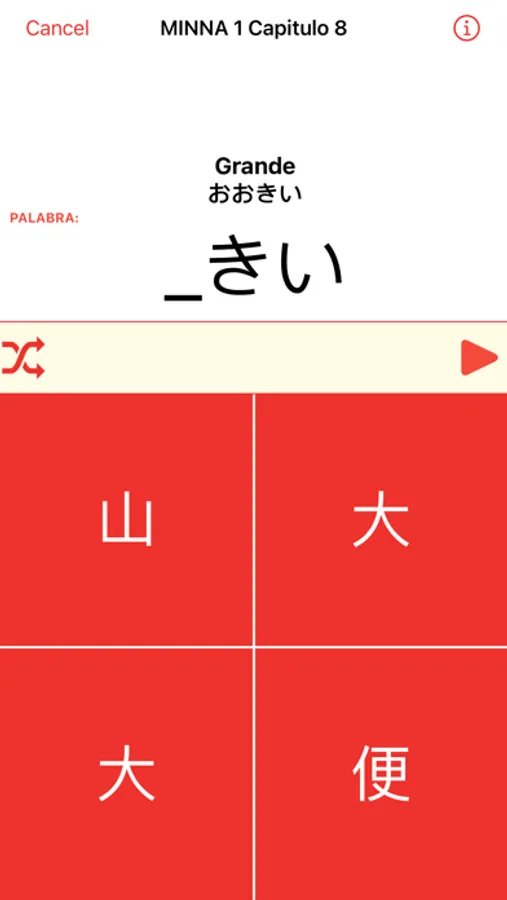 Completar Palabras: Refuerza tus conocimientos y agudiza tu comprensión visual completando palabras con los Kanjis adecuados. Desafíos que te mantendrán enfocado y motivado mientras amplías tu vocabulario.