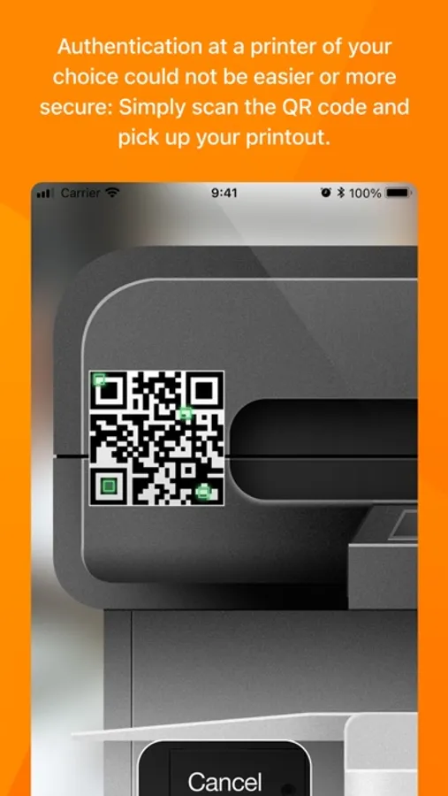Initiate a print job from a device of your choice. In the Personal Printing app, choose the desired job from the easy-to-view list of print jobs. In order to authenticate your identity, simply scan the QR code attached to the printer – your confidential printouts are then available.