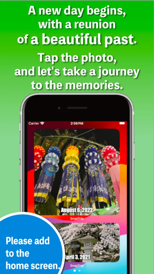 Add SnapTrip's widget to your home screen and start each new day reliving your cherished memories through photos.
