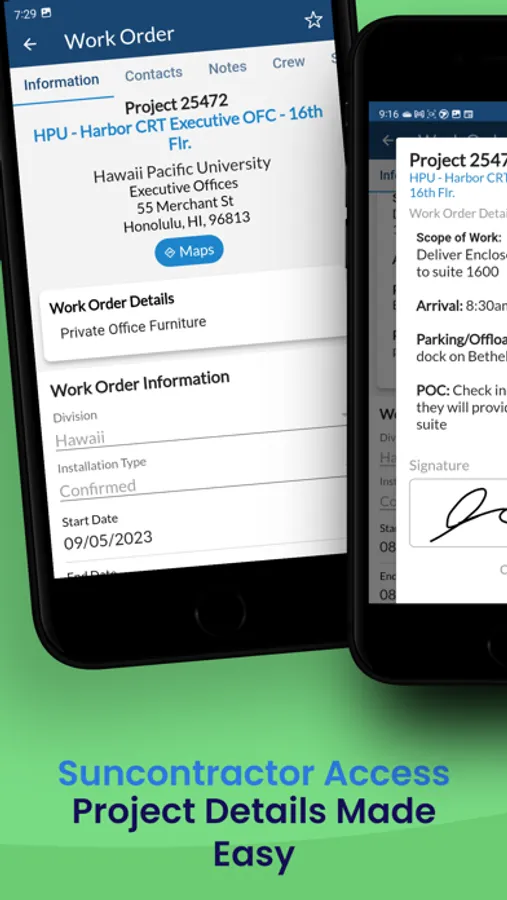 2. Project Information: Important project details such as customer name, address, scope of work, customer signoff, acceptance, and project contacts are readily available within the app, ensuring subcontractors have all the information they need at their fingertips.