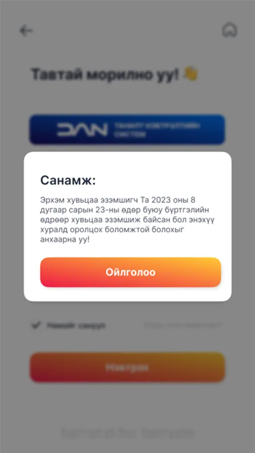 - authenticate yourself by logging in to the app the with credentials provided by the meeting organizers (итгэмжлэлээр орж байгаа нөхдүүд);