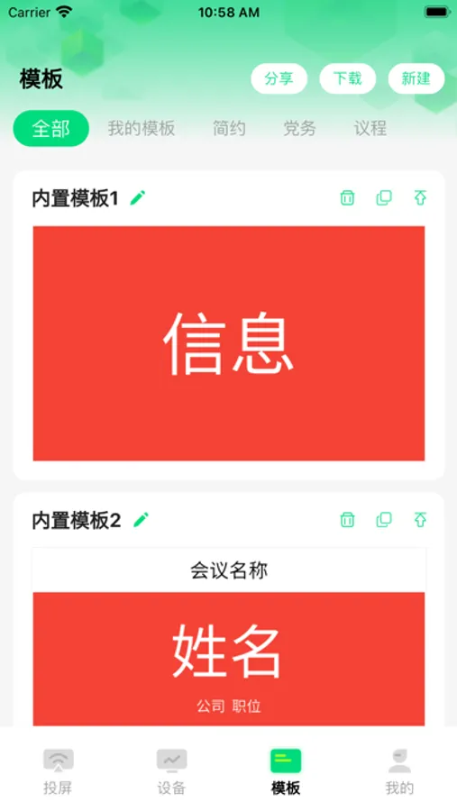 1. 支持会议模板在线编辑,双面均可刷新