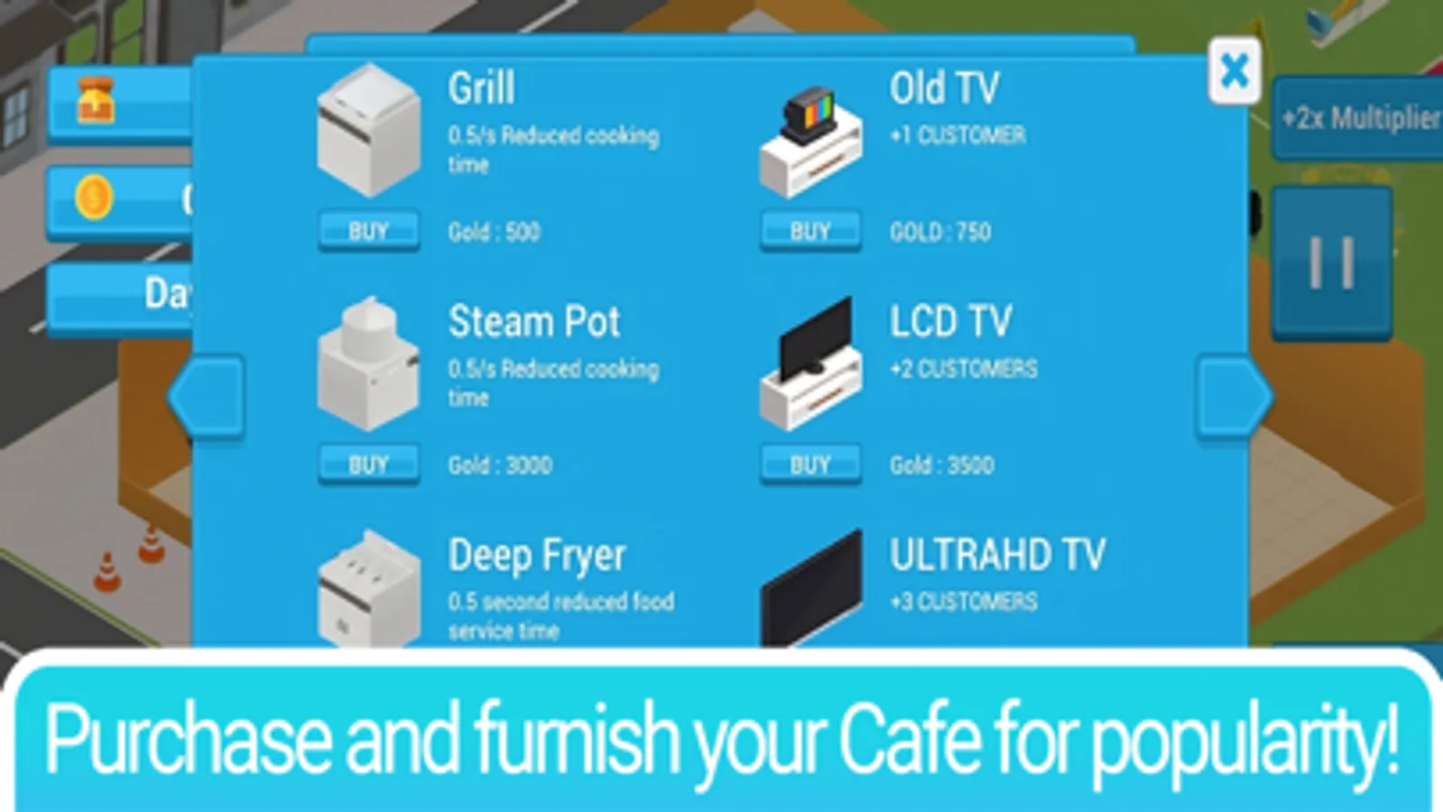 Keep your café fresh and exciting by regularly adding new dishes and expanding your menu. As your café grows, unlock additional space to accommodate more customers and decor.