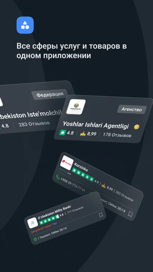 Sharhga qo‘shiling va to‘g‘ri tanlov qilish qanchalik oson ekanligini bilib oling. Yaxshi va ishonchli joylarni kashf eting, eng yaxshilariga - eng yaxshi xizmat, eng yaxshi joy, eng yaxshi munosabatga ega bo‘ling!