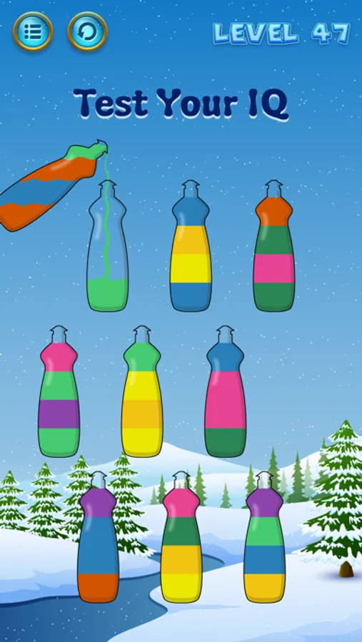 Unlock the soothing power of color coordination & logical thinking with our amazing Water Sort Color Match Puzzle games, designed to challenge & entertain. This exciting bottle fill pouring game challenges you to sort colored water in a variety of different levels & scenarios.