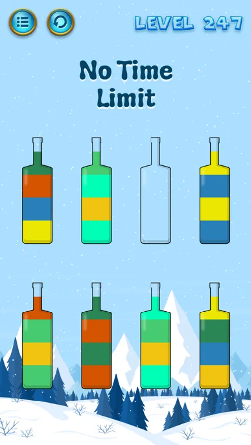 ⇒ No time limits & penalties, play at your own pace with this color match water sort