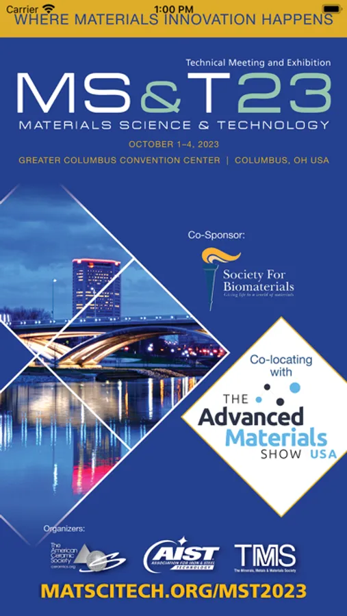 Materials Science & Technology 2022 technical conference and exhibition is October 1–October 14, 2023, in Columbus, Ohio. MST23 is the leading materials science forum addressing structure, properties, processing and applications.
