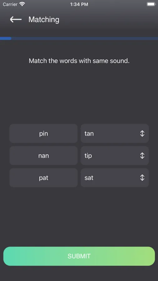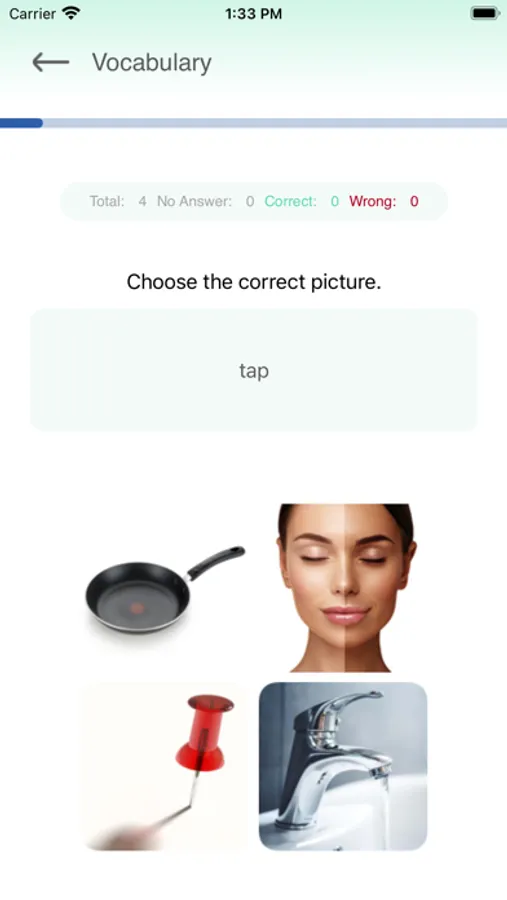 When the app is installed, the user is asked for a cellphone number for verification, then a verification code is sent to the given number, and then a short description of the Training System of the app is presented. Then the user can take a placement test to choose the right level or skip and start with the first term.