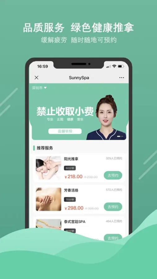SunnySpa 是国内领先的移动互联网保健推拿约单平台,致力于为用户提供安全、专业、正、