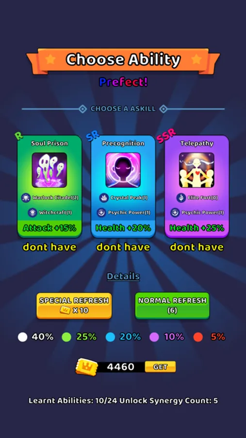 Choose abilities, combine synergies, collect heroes, and persistently break through levels to earn rewards!