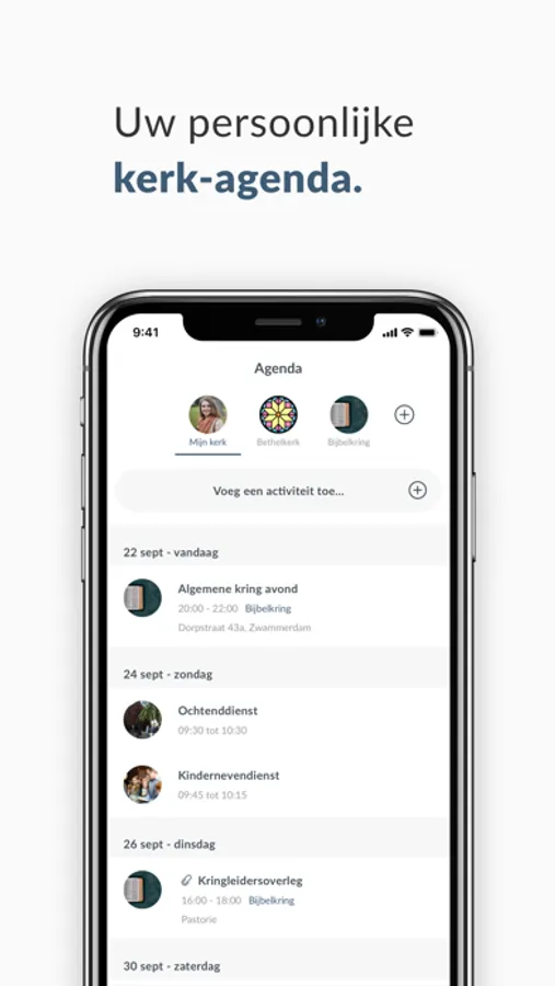 Dankzij onze unieke groepenstructuur helpen wij kerken beter te communiceren. Met de hele gemeenschap, maar ook onderling. U kunt zelf groepen toevoegen en mensen daarvoor uitnodigen. Een slimme timeline zorgt er voor dat iedere gebruiker persoonlijke en relevante informatie ziet.