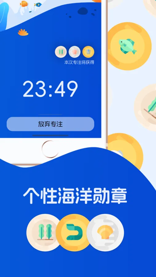 每当你想更接近自己的目标时,就用专注海洋去获取一个海洋生物勋章。