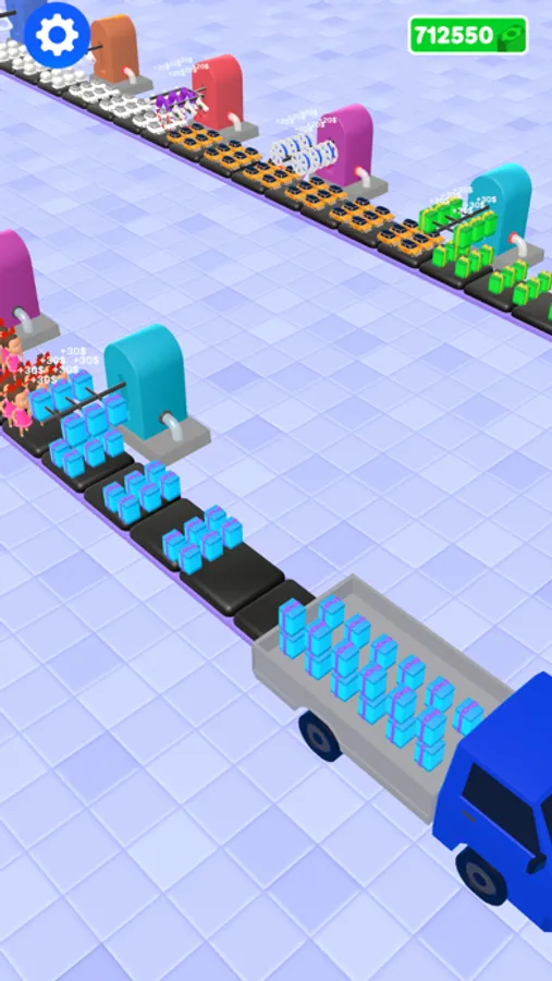 Starting from a small factory, Products are packaged and sold. Use the money to upgrade. The higher the level, the faster the laying speed and the higher the price. Open a new production line and fill your boxes.