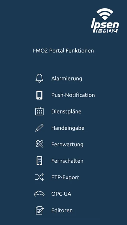 Die Ipsen I-Mo App bietet folgende Funktionen: