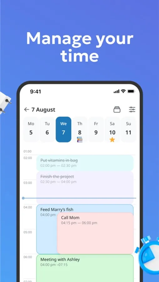 Easily manage your days, dates, and work commitments. Plan meetings, events, and even your workout activities. Stay organized and keep track of your busy schedule. You can even add emoji notes to highlight important days and events.