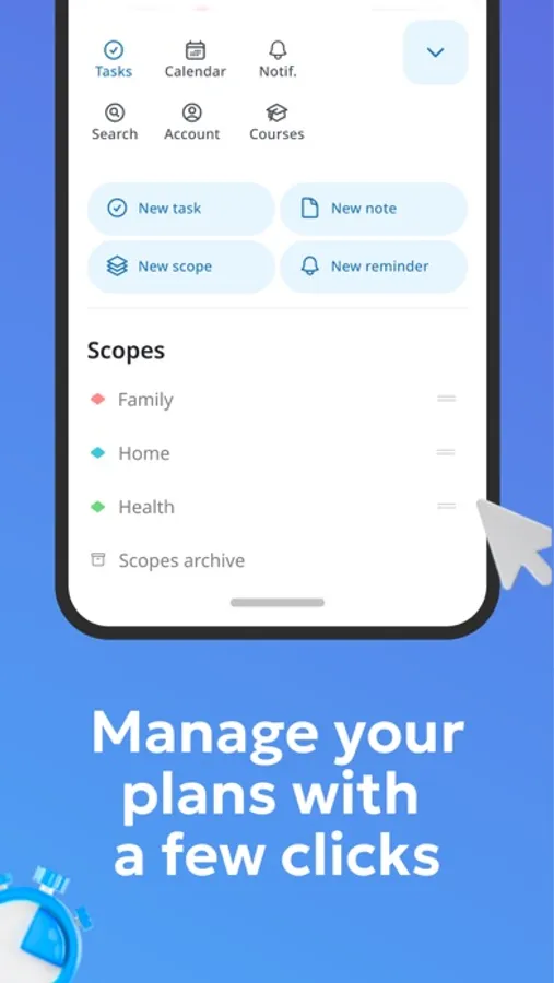 Ikiteo understands that every aspect of your life is important. That's why it allows you to define your own scopes – whether it's work, self-development, travel, sports, or any other areas. You can set specific goals, execute projects, and track progress within each scope. Thinking about buying a new apartment? Planning a trip? Executing home repairs? Ikiteo has got you covered!