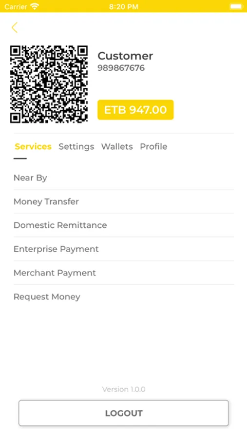 - Money Transfer - Request Money - Domestic remittance - Airtime Top-Up - Pay with QR Code -