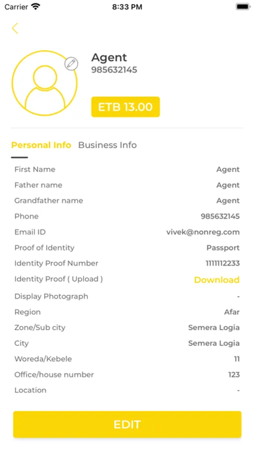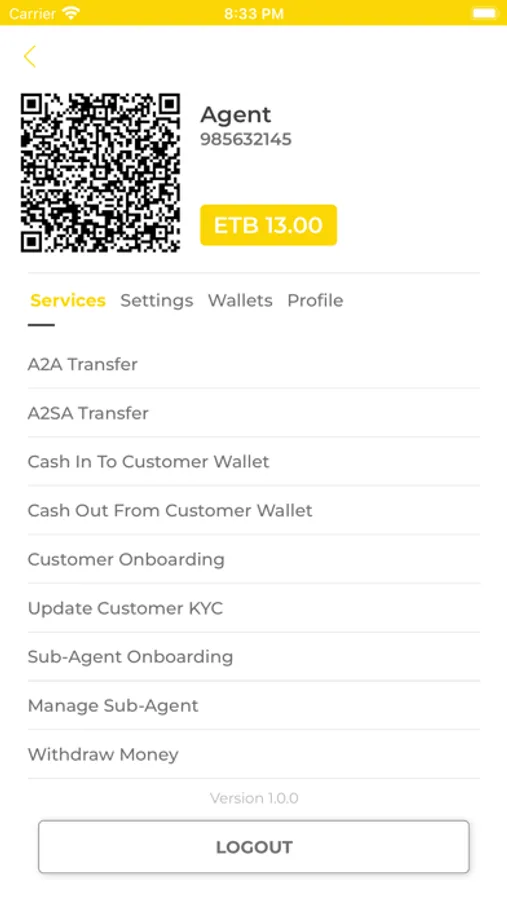 Wallet Birr Agent can onboard customers and sub-agents directly from the mobile device.