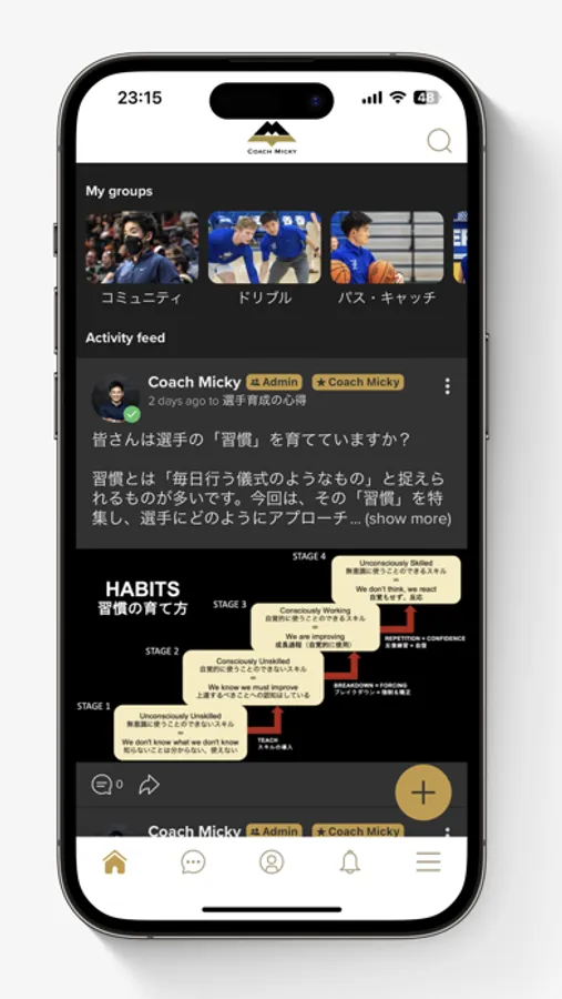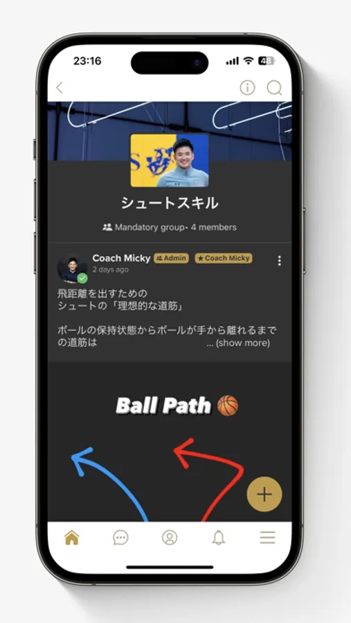 オープンなSNSとは違い、完全会員制のクローズドコミュニティで熱量の高いコーチやプレイヤー向けのアプリケーションです。